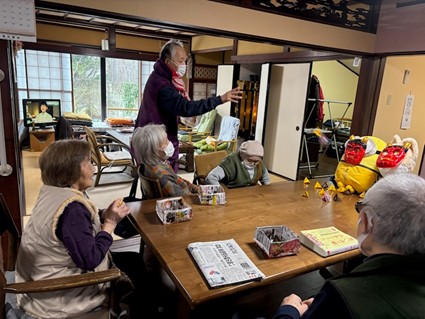 矢田野小学校での認知症サポーター養成講座は、平成20年よりグループホームのご利用者さんが学校に出向き、スタッフと共に先生を勤めています。認知症キッズサポーターになった子ども達は、今度はグループホームを訪ねてくれます。10年以上交流を続けています。