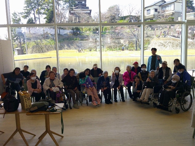 3月27日桜の開花宣言前でしたが、小規模多機能ホームはしたて・小規模多機能ホームきんめいのご利用者さんと丸岡城まで花見ドライブに行きました。案の定桜の開花はまだでしたが、マイクロバスの中は会話の花がさいていました。当日は晴天でドライブ日和。丸岡城を眺めながらお弁当を食べた後、お土産コーナーで買い物を楽しんだり、丸岡城の下を散策する方もおられました。